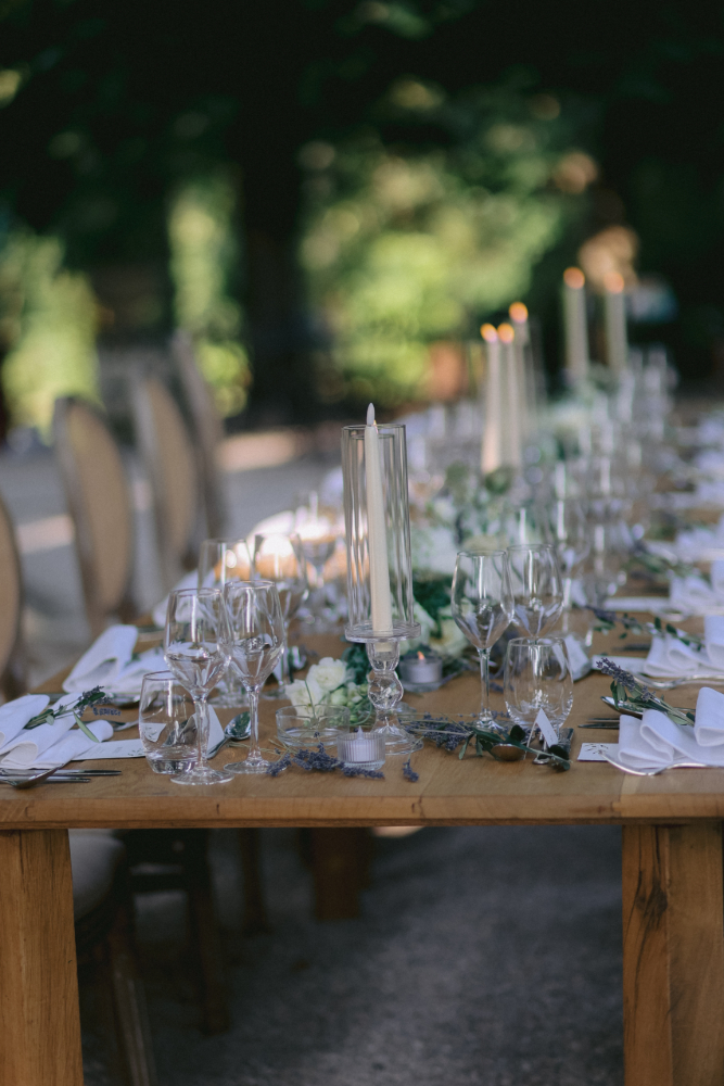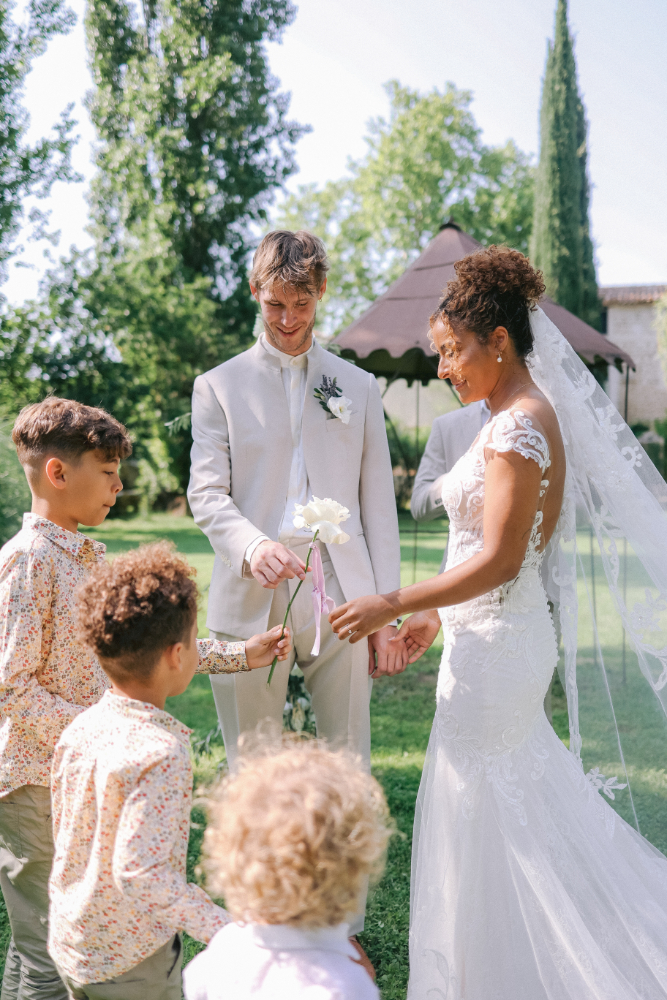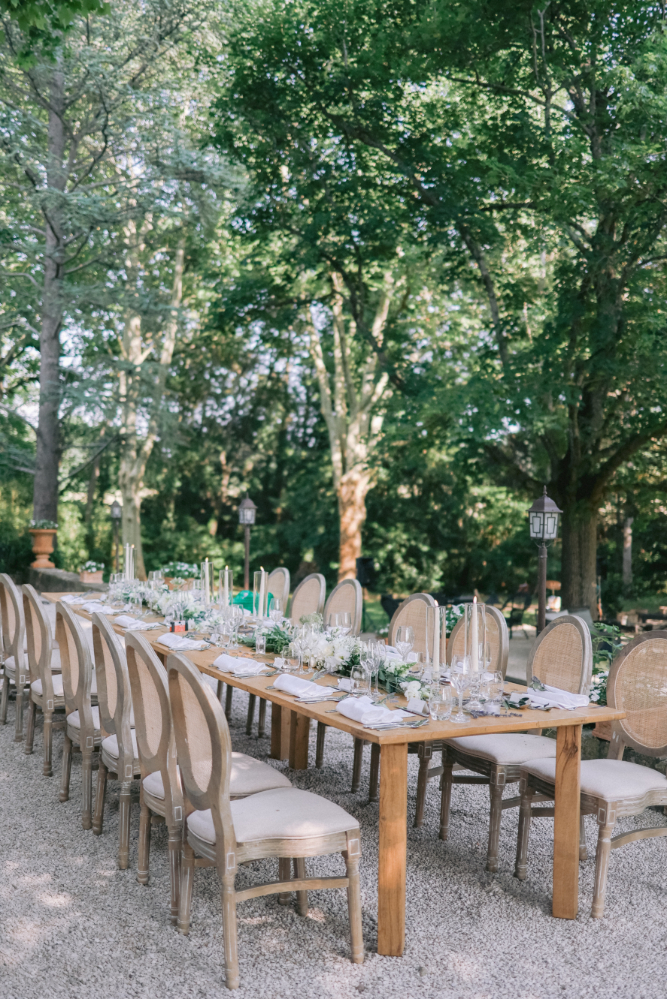 Le design floral, pensé en harmonie avec ce cadre naturel d’exception, mêle fleurs de saison, textures organiques et la pureté du blanc pour créer une atmosphère à la fois élégante, chaleureuse et poétique. Entre tradition provençale et romantisme raffiné, cette décoration florale sublime le lieu et accompagne les instants précieux de ce mariage d’exception, capturés à travers des images lumineuses et authentiques.