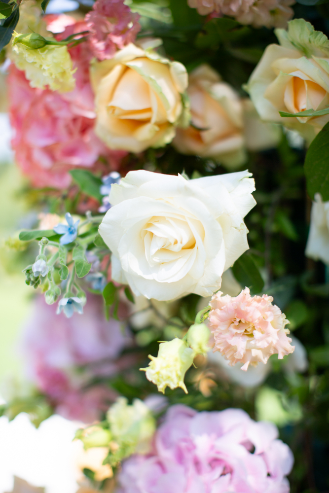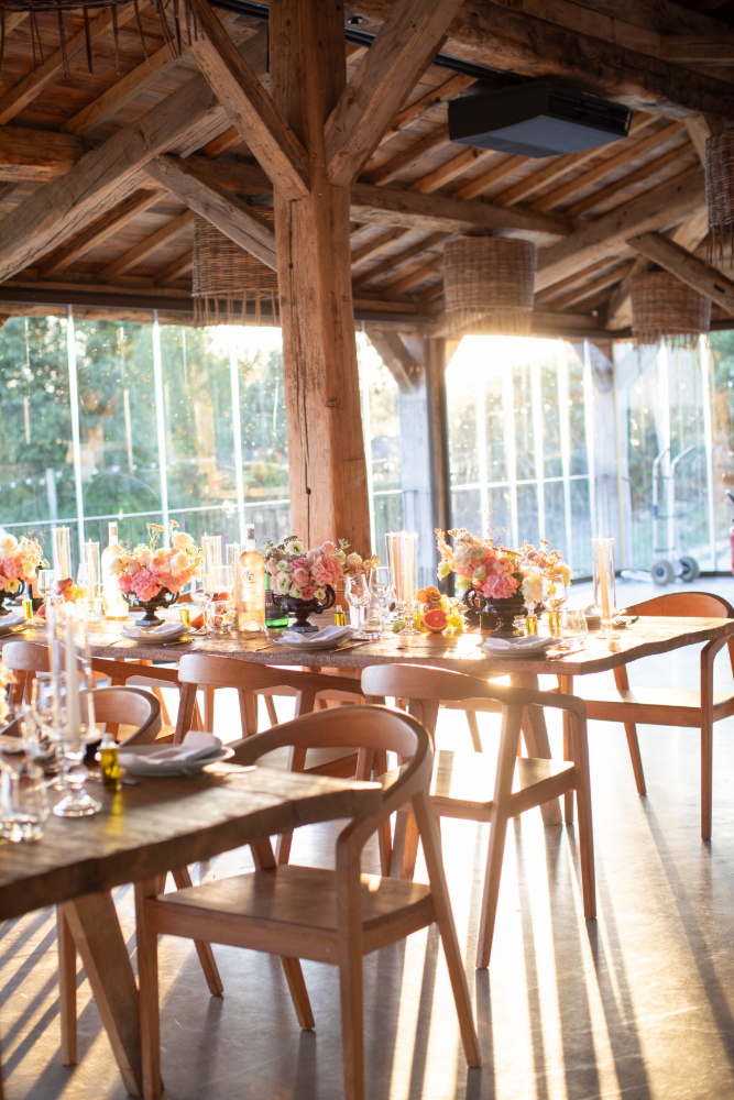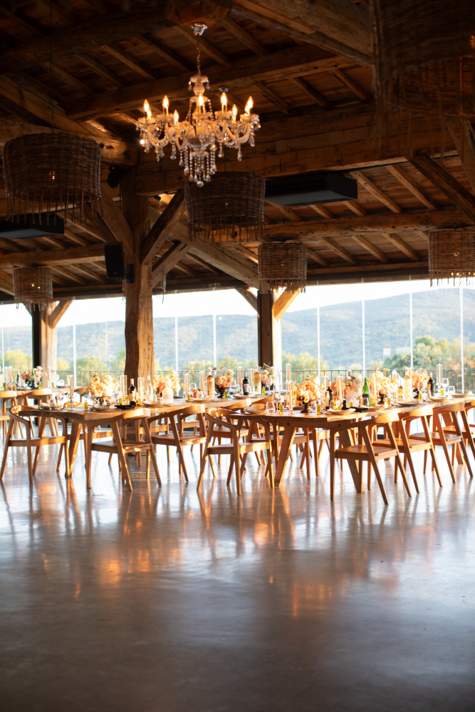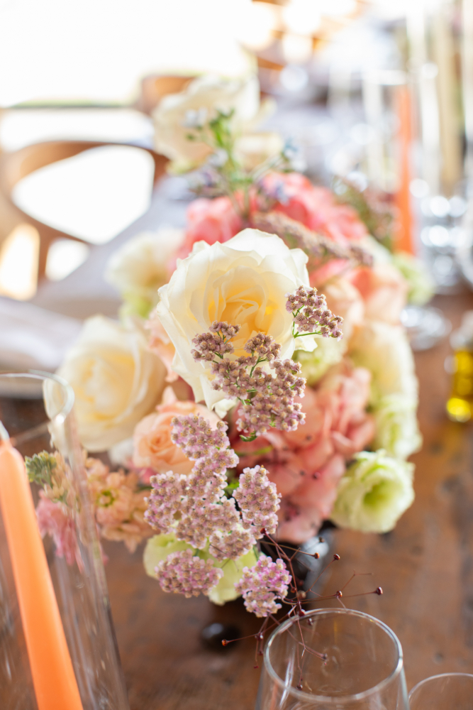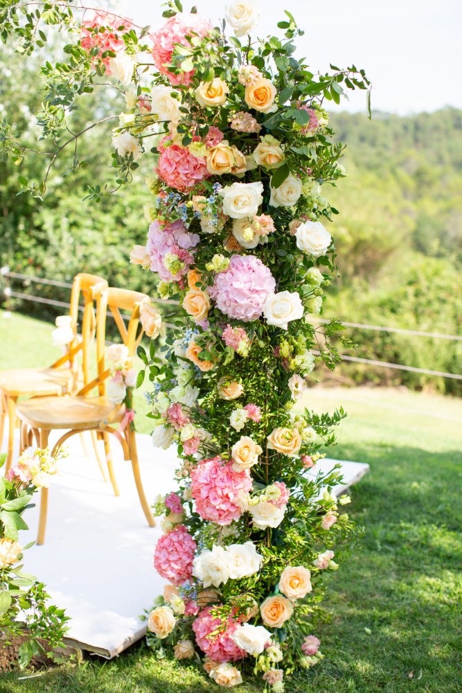 Le design floral a été imaginé sur mesure, en parfaite adéquation avec le lieu et les attentes des mariés. Une scénographie délicate et raffinée, mêlant des couleurs douces à des fleurs légères et élégantes, sublimées par l’intégration de fruits de saison tels que les pêches, les abricots et autres . Ces éléments naturels apportent chaleur, fraîcheur et poésie à l’ensemble, tout en respectant l’identité du domaine.